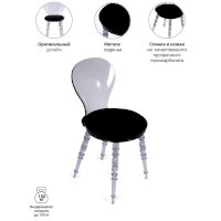 Дизайнерский стул Babel это традиционный классический дизайн мебели и сочетание элементов из пластика и эко кожи. Главным украшение стула стали резные пластиковые ножки. Удобное круглое сиденье и прозрачная вогнутая спинка обеспечивают комфорт использования и эргономику стула.