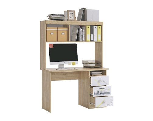 Стильный стол «Форсаж» – мечта каждого мальчика. Компактный стол прекрасно впишется даже в маленькое пространство детской комнаты. Удобная столешница подойдет как для письма, так и для занятий на компьютере или ноутбуке. Открытые полки и закрытые ниши надстройки стола хорошо подходят для хранения учебников  и школьных принадлежностей. В 3-х выдвижных ящиков поместится все, что необходимо для учебы и творчества. Эффектный принтерный рисунок на фасадах выдержан в общем стилистическом решении. Рисунок устойчив к истиранию и ультрафиолету.