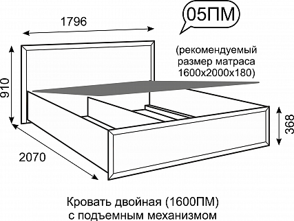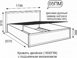 Кровать №5 двойная 1600 мм с подъемным механизмом