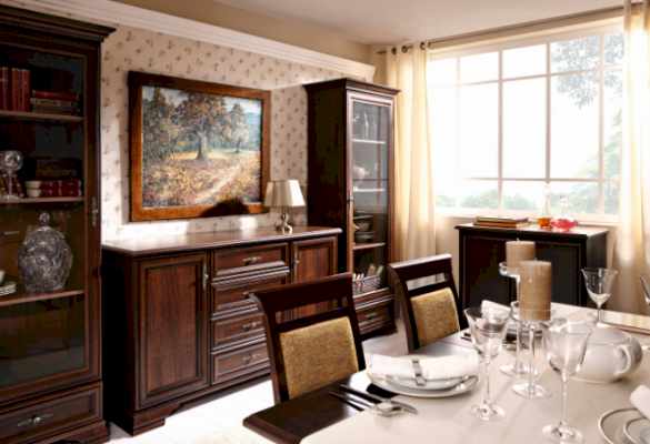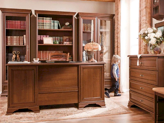 Кентаки - мебель классического стиля, отличающаяся природными цветами, отделкой, фактурой, всегда актуальна и востребована, она настолько универсальна, что без проблем впишется в любой современный дизайн. Стиль набора модульной мебели подчеркивается лакированной патинированной планкой в фасадах, карнизами - завершающим акцентом в зеркалах и высоких элементах набора, витиеватыми ручками.