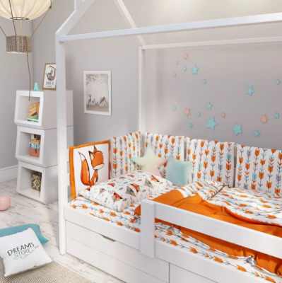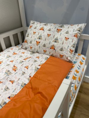 Яркие и стильные лисички станут любимыми героями ребёнка. Гарантируем, в кроватку, заправленную этим комплектом, ребёнок будет забираться только с удовольствием!