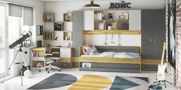Цвет: Дуб золотистый/Графит/Белый