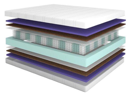 Наполнитель: Инновационный материал Neolatex, кокосовая койра, НПБ 256 шт/кв.м., система усиления боковой поддержки, ППУ