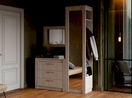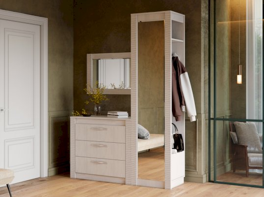 Выдержанная в классическом стиле, прихожая может гармонично сочетаться с любым интерьером. Не смотря на свои компактные размеры, прихожая имеет просторный шкаф для верхней одежды, удобные полки и боковой приставной модуль, где можно разместить не только полезные аксессуары, но и элементы декора.