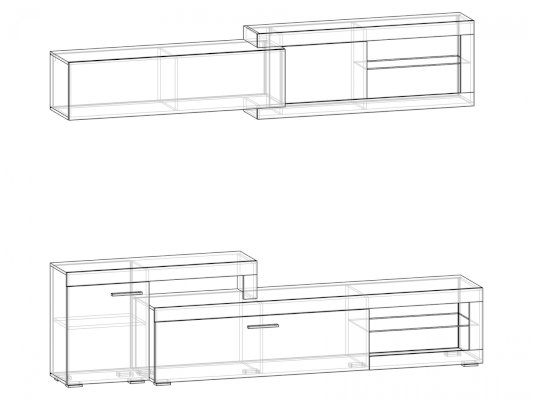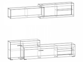 Глубина комода — 320 мм. Обратите внимание! Гостиная не универсальна по сборке, собирается только так, как показано на изображении.