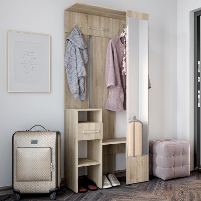 Прихожая Лига – идеальный выбор для небольшого пространства. Модель выполнена в цвете дуб сонома и будет прекрасно смотреться в современном интерьере. Вы с легкостью сможете расположить в ней все необходимые предметы гардероба благодаря открытым полкам, выдвижному ящику и зоне с крючками. Зеркало во весь рост – очень функциональное решение.