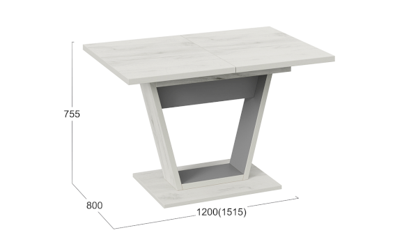 В оформлении новинки применяются актуальные варианты декора, что подчёркивает универсальность стола. Модные текстуры «Дуб крафт золотой», «Дуб крафт белый» в сочетании с цветами чёрный и серый графит, придадут ощущение тепла и уюта в кухонном интерьере.