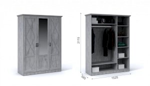 Распашной трехдверный шкаф выполнен в популярном стиле неоклассика – белые рамочные фасады с фактурой и рисунком натурального дерева, декоративные крестообразные накладки, фигурные ножки и карниз все это придает комнате элегантный и светлый вид. Вместительные отделения со штангой и полками поместит в себя верхнюю одежду, коробки с обувью и головные уборы. Мебель выполнена из экологичных материалов.