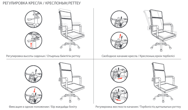 Конструкция кресла отвечает всем нормам современной эргономики: высокая спинка, упругая набивка и хромированные подлокотники с противоскользящими накладками. Всё это обеспечит необходимым комфортом пользователя.