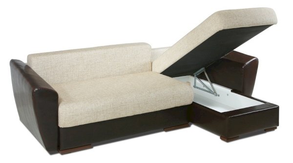 Расцветка: "Марал" кожзам – Cometa White / «Арбен» Рогожка – Саванна хазел Угловой диван Комфорт-евро компакт 3 категория ткани