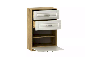 Тумба Оливия НМ 040.45 Х обеспечит аккуратное хранение обуви в прихожей. Для этого лучше всего подойдет нижнее отделение с полкой, скрытое за откидным фасадом. За счет встроенных газлифтов дверца открывается плавно. В верхней части тумба оборудована двумя выдвижными ящиками, в которых можно хранить средства по уходу за обувью, ключи.