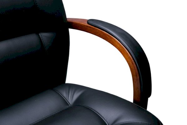 Кресло с высокой спинкой, с подлокотниками дугообразной не замкнутой формы с мягкими накладками обитыми в цвет кресла.
