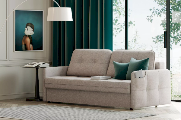Благодаря своим габаритам модель идеально подойдет для небольших помещений, гостиной или подростковой комнаты. Универсальный дизайн подойдет для любого современного интерьера. В комплекте к дивану можно заказать кресло-кровать или кресло с бельевым ящиком.