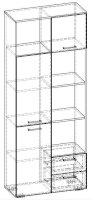 Применение задней стенки из ЛДСП (в ячейках с ящиками и фасадами) позволяет использовать данный стеллаж для зонирования пространства (чтобы предотвратить опрокидывание, необходимо обеспечить крепление стеллажа к стене).