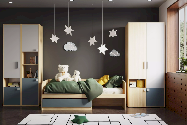 Шкаф-пенал из новой коллекции детской мебели Элиот представлен в нейтральных оттенках песочного, белого и контрастного маренго – цвета темной морской волны, которые отлично подойдут в комнату как девочки, так и мальчика. Благодаря универсальному дизайну шкаф легко впишется в любые современные интерьеры.