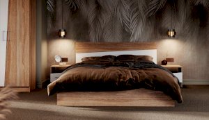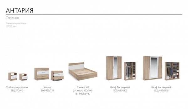 Спальня Антария – это дух творчества и самобытного стиля. Нестандартные фасады ЛДСП с асимметричными скошенными линиями вносят свободу и движение в жилое пространство, делают интерьер более сложным и необычным, придают характер и индивидуальность. Декор фасадов повторяет цвет и рисунок натурального дерева. Оптимальный набор модулей поможет вам создать яркий и функциональный интерьер, отражающий ваши вкусы и предпочтения.