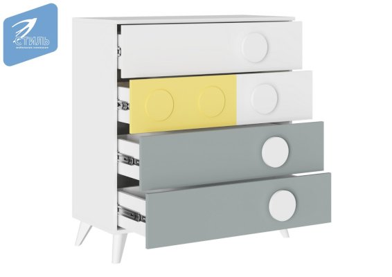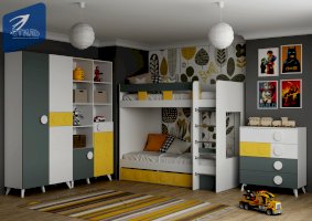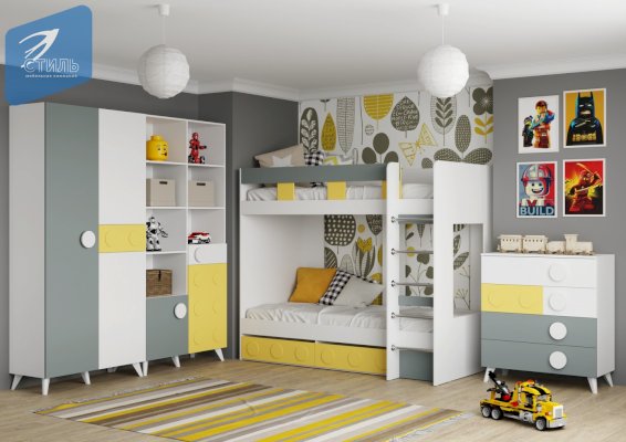 • Гармоничное сочетание цветов белого, желтого и серого отлично смотрится и прекрасно подходит для интерьера детской комнаты