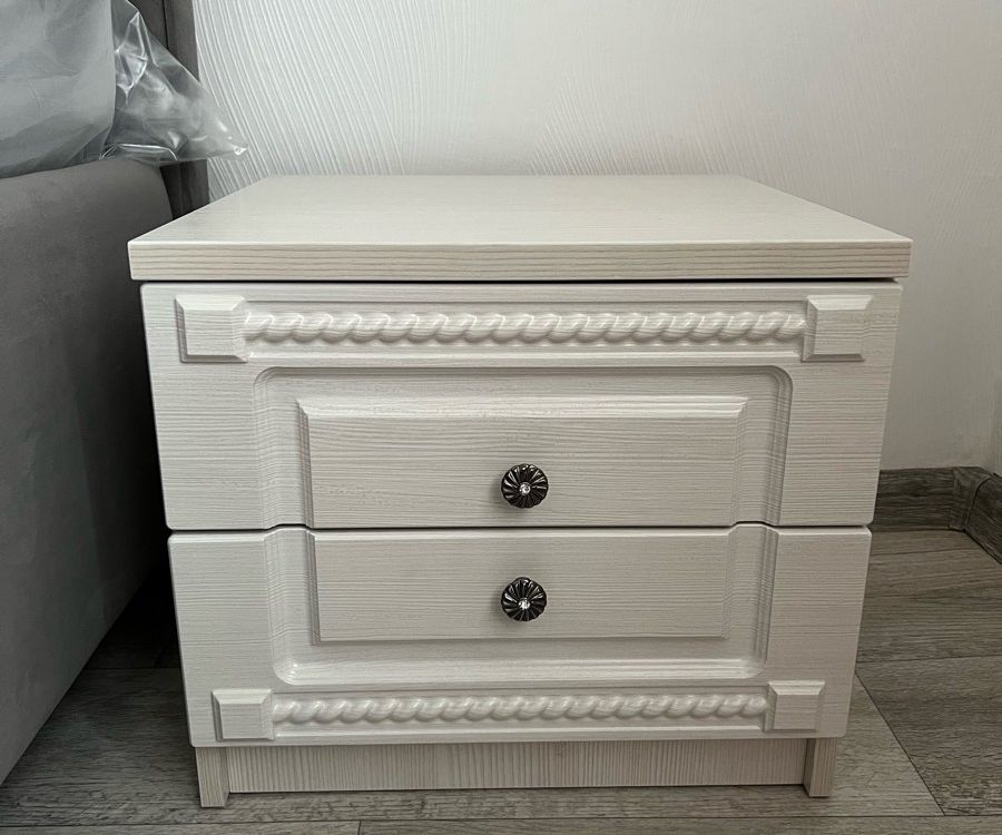 Фурнитура: Ручки металлические со стразами, шариковые направляющие на 2 выкатных ящиках