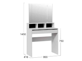 Помимо внешней привлекательности стол оснащен большим зеркалом с поворотными зеркальными створками, вместительную столешницу с надстройкой и выдвижной ящик. Благодаря удобным отсекам, вы сможете организованно хранить все необходимые аксессуары и косметику, обеспечивая легкий доступ к ним в любой момент. Это поможет поддерживать порядок и удобство в Вашем уголке красоты.