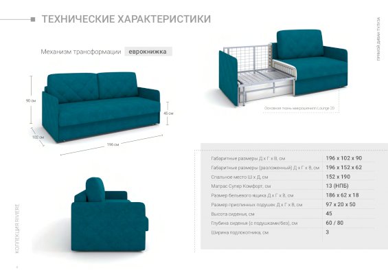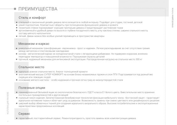 • эргономичный и удобный диван по высоте и глубине посадочного места, углу наклона спинки, ширине спального места, составу мягкого наполнителя