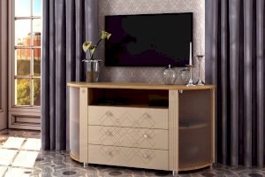 Красивая и стильная ТВ тумба «Капелла» изящно заполняет пространство и создает уникальный интерьер. Необычная корпусная мебель для гостиной — это особый микромир в помещении, где царит уют, счастье и комфорт.