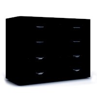 Комод имеет 4 широких (ширина изделия 1050 мм) ящика с декоративными вставками по центру фасадов, которые устанавливаются на телескопические шариковые направляющие полного выдвижения.