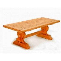 Большой стол с красивой столешницей в рамочном обрамлении. Прекрасное решение загородного дома, хозяева которого любят принимать гостей или наслаждаться просторной, основательной мебелью.  Прочная, надежная конструкция на каждый день. Столешница с красивым резным подстольем очень удобна и устойчива.
