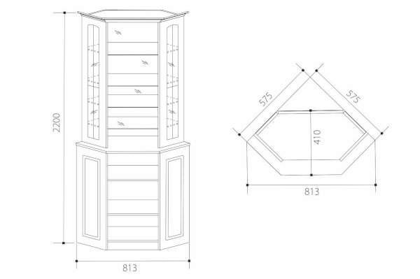 Угловая витрина с зеркалами Венеция В-12 (Марибель)