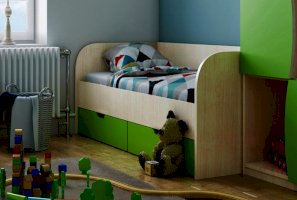 - Спальное место - 80х160 см: ДхГхВ 1.63x0.85x0.7 м. Под кроватью 2 ящика для белья.