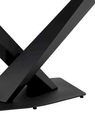 Столешница сочетает в себе прочную керамику, материал устойчивый к перепадам температуры, к чрезмерной влаге, любые загрязнения легко устранить. Поверхность повторяет рисунок изысканного мрамора, излучая комфорт и спокойствие. Каркас черного матового цвета изготовлен из прочного и долговечного МДФ. Основание из двух объёмных балок образует простую и надежную конструкцию. Роскошное сочетание цветов позволяет подобрать к столу любые комплекты стульев в современном стиле.