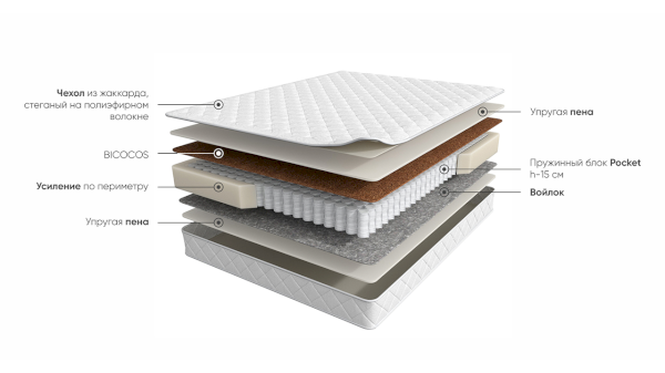 Наполнитель: ППУ, независимый пружинный блок, би-кокос, термовойлок