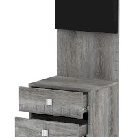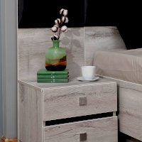 Прикроватная тумба NEO 41 с двумя выдвижными ящиками и высокой мягкой спинкой – красивый и функциональный модуль. Изюминка тумбы - комбинированная задняя стенка, возвышающаяся над столешницей: ее нижняя часть из ЛДСП, а верхняя с подушечкой из экокожи цвета Асфальт. Когда тумба приставлена к кровати, тогда она составляет единую композицию с изголовьем. Дополняют тумбу интересные ручки на ящиках: в обычном состоянии - это плоские прямоугольные кнопки, а при необходимости выдвинуть ящик средняя часть приподнимается кончиками пальцев.