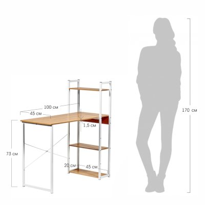 Письменный стол в полками «Frame» позволит быстро организовать рабочее пространство на скромной жилой площади. Поверхности стола размером 100х45см вполне хватит для работы за ноутбуком. Полки позволят удобно организовать хранение необходимых мелочей и аксессуаров.