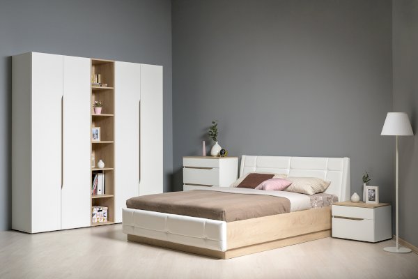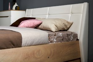 • Мягкое изголовье изголовье кровати установлено с небольшим наклоном, что добавляет возможность не только лежать в кровати, но и комфортно сидеть, как на диване