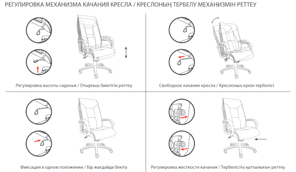 Тип механизма кресла: "топ-ган" качание с регулировкой под вес и фиксацией в 1 положении