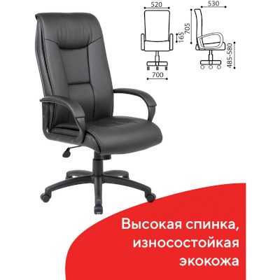Кресло руководителя BRABIX Work EX-513 выполнено по всем канонам эргономики: высокая спинка, прочные подлокотники с мягкими накладками и «плотная» набивка.