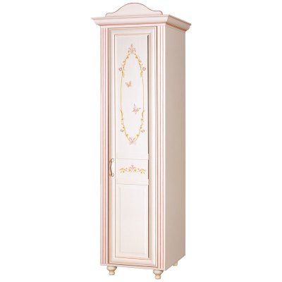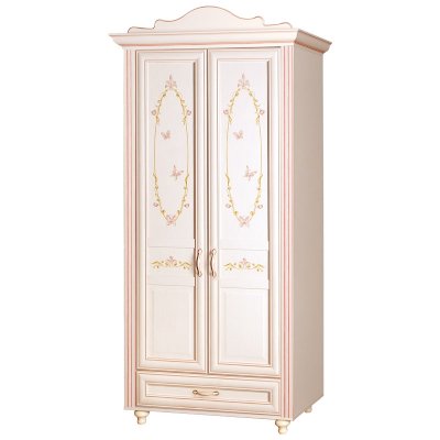 Мебель для детской комнаты «Алиса» – мебель для девочек и девушек, стилизована под Прованс, который поддержан светлым декором, цветочными рисунками и патиной на фасадах. При создании детской использовались приемы итальянского декорирования мебели. Мотивы классической росписи в сочетании с любимым мотивом детского рисунка – бабочки и цветы – создают ощущение юности и нежности. Использование декоративных элементов – корон и карнизов в наборе мебели не перегружают интерьер детской комнаты и при этом создают ощущение интерьера маленькой принцессы. Изящные ручки под золото со вставками молочно-белого цвета идеально сочетаются с кремово-белым декором и золотистой палитрой рисунков вензелей. При всей внешней легкости и утонченности мебель весьма практична в использовании, благодаря надежной фурнитуре «Hettich». Еще одним плюсом детской «Алиса» является большое количество различных модулей, позволяющих собрать комплект для любой комнаты.