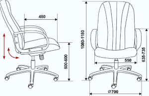 Высота с подлокотниками: 635-735